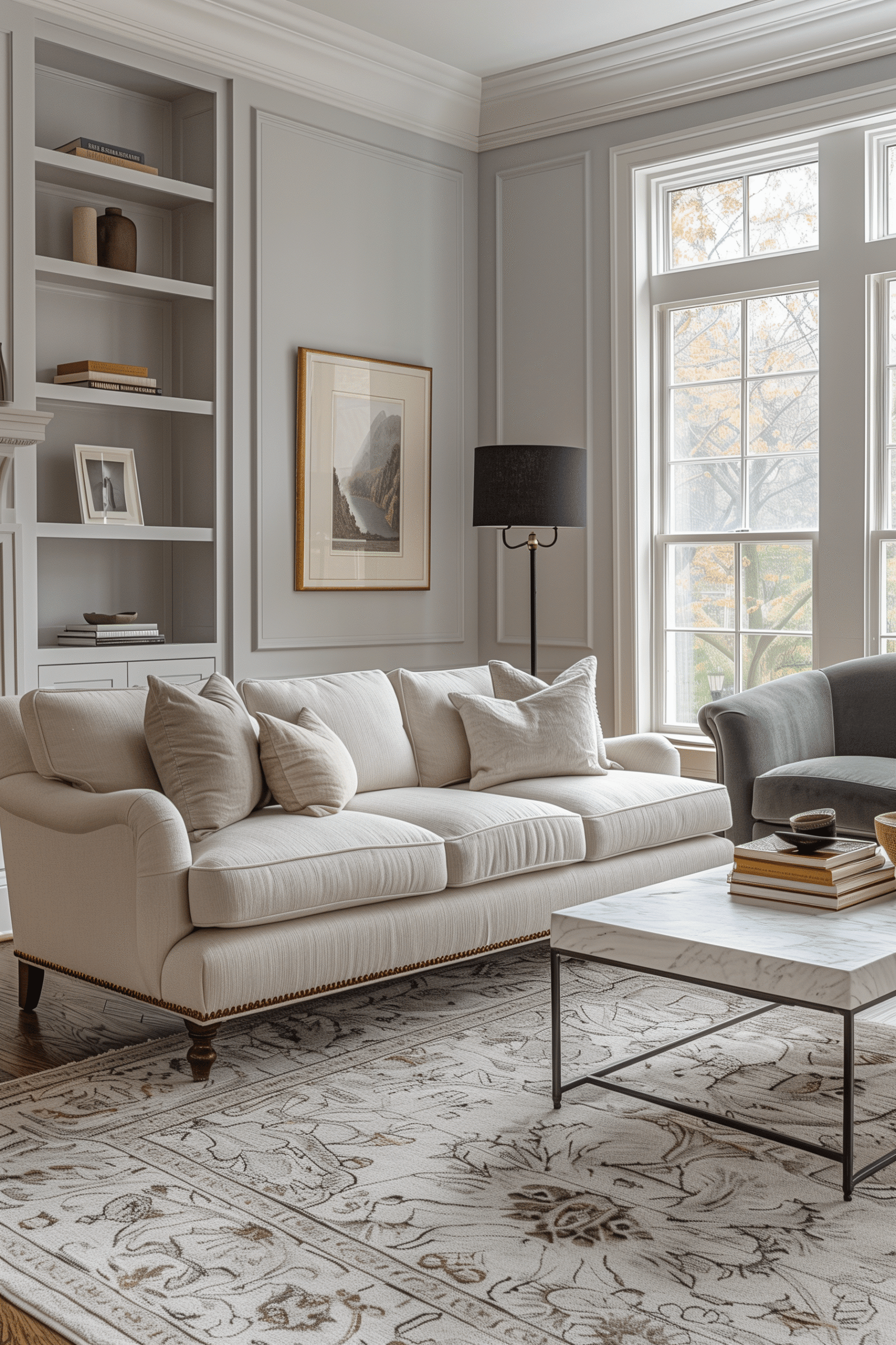 Structure is the soul of this style. Think paneled walls, pilasters, and subtle moldings that provide rhythm and depth. Architectural detailing frames the room, while open layouts and sleek furniture keep it fresh and breathable.