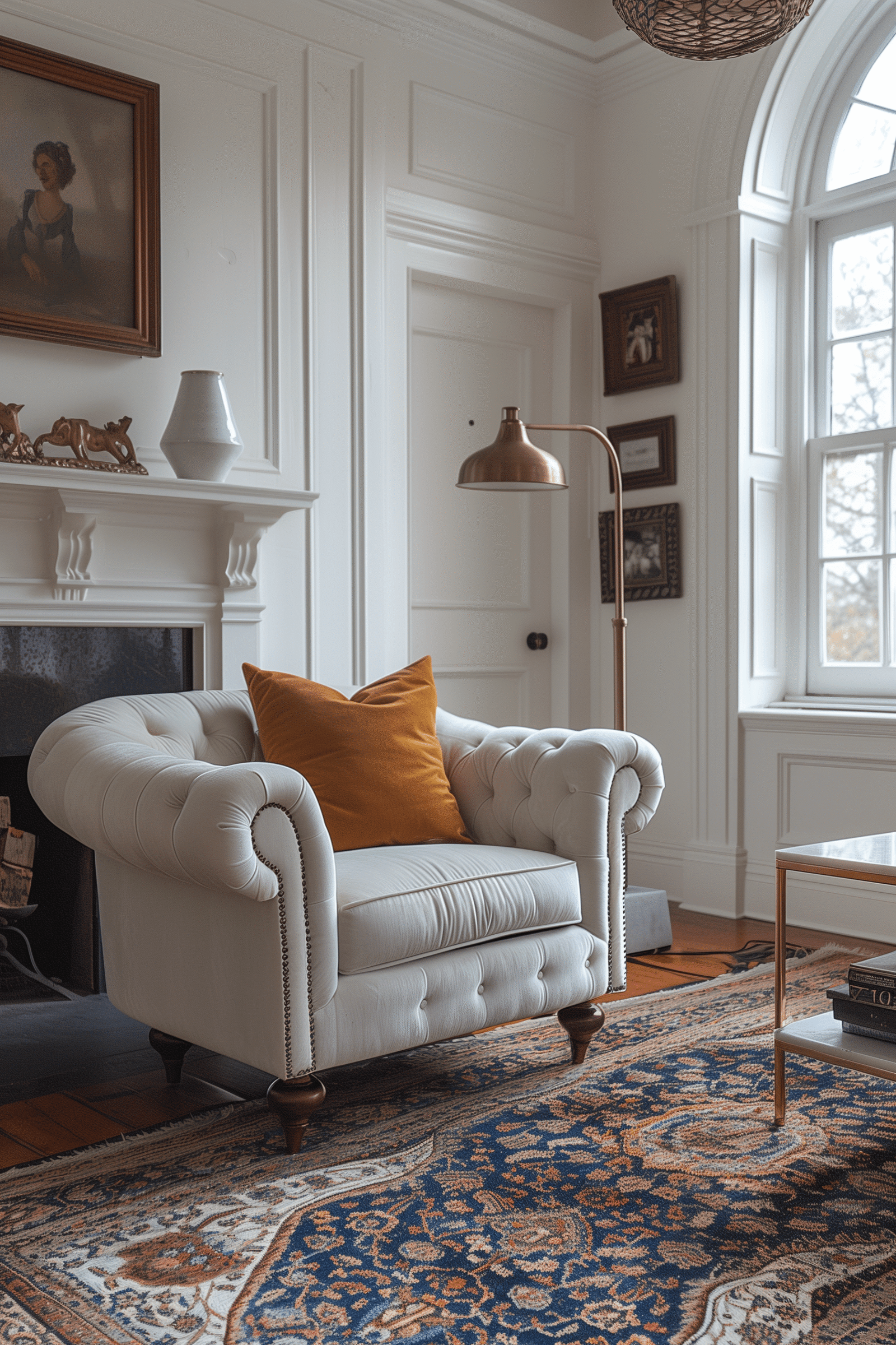 Curation is key. Select one heritage piece — a vintage cabinet, an heirloom mirror, a traditional armchair — and frame it with streamlined contemporaries. This composition keeps the space poised, avoiding visual heaviness while retaining depth.